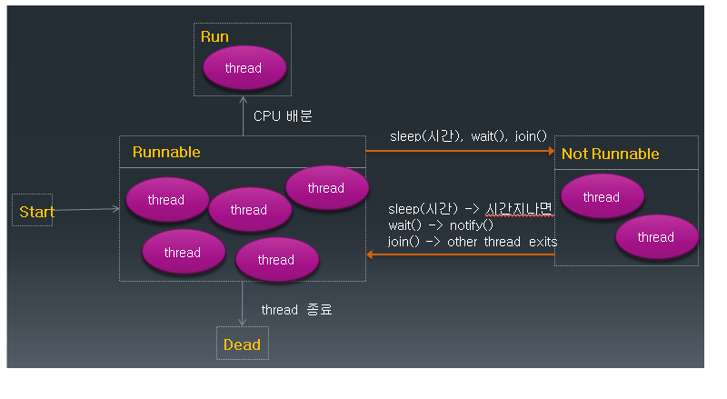 - 다른 Thread의 수행이 끝나면 runnable 상태로 돌아옴